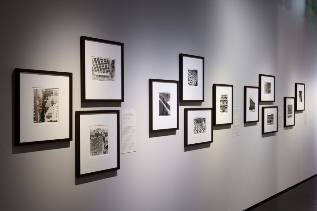 Darüber hinaus fesselten Stadtraum und Architektur immer wieder die Aufmerksamkeit von Adelheid Heine-Stillmark. Auch dabei lotete sie die Möglichkeiten aus, mit der Kamera dem Bekannten etwas Neues zu entlocken. Ungewöhnliche Blickwinkel und Bildausschnitte erinnern an die Stilmittel des „Neuen Sehens“ und inszenieren Elemente der Architektur, die eine grafische Wirkung entfalten: So stützt der Blick entlang der gerasterten Fassade eines modernen Hochhauses in der Millionenstadt São Paulo hinab bis zu den ameisengroßen Passanten. Auch in zahlreichen Aufnahmen historischer Bauten werden Muster, Strukturen und Oberflächen durch enge Bildausschnitte aus ihrem architektonischen Zusammenhang herausgelöst. Dabei erzeugen die starken Kontraste von Licht und Schatten eigengesetzliche Muster und verstärken die abstrahierende Wirkung, die auf den Gegensatz von Schwarz und Weiß der Fotografie zurückführt.